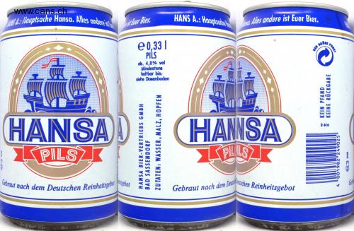 Brewed according to the German purity law HANS A .: Houptsae Hansa. Everything else HANSA PILS wee IT