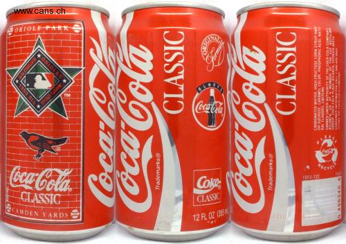 CAMDEN YARDS 09-8661 ADIU CLASSIC Coca-Cola 12 FL OZ (355 m CLASSIC Coke Trademarks Ⓡ 1 Trademarks Ⓡ 0 496340 1993-122 9 12 07 E Coca-Cola Coca-Cola RECYCLE Coca-Cola 11V E66L PL STAR GAME E A TM Coca-Cola Coca-Cola BALTIMORE * Sh ORIOLES ORIOLE PARK CLASSIC 00 Form ORIGINA rmula CLASSIC CARBONATED WATER, HIGH FRUCTOSE CORN SYRUP AND/ OR SUCROSE, CARAMEL COLOR, PHOSPHORIC ACID, NATU RAL FLAVORS, CAFFEINE. CANNED UNDER AUTHORITY OF THE COCA-COLA COMPANY ATLANTA, GA BY A MEMBER OF THE CCE BOTTLING GROUP, COCA-COLA PLAZA, ATLANTA, GEORGIA 30313. CONSUMER INFORMATION CALL 1-800-438-2653 1993 THE COCA-COLA COMPANY