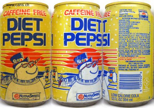 CAFFEINE FREE DIET PEPSI I De NUTRASWEET BRAND SWEETENER DIET CET CAFFEINE FREE DIETT PEPSSI D De NUTRASWEET BRAND SWEETENER DIET CAFFEINE FREE DIET PEPSI-COLA SUGAR FREE VERY LOW SODIUM DIET PEPS NUTRITION INFORMATION PER SERVING 6 OZ SERVING SIZE SERVINGS PER CONTAINER CALORIES PER SERVING PROTEIN (GRAMS) CARBOHYDRATE-(GRAMS) FAT (GRAMS) SODIUM (MG) PERCENTAGE OF U.S. RECOMMENDED DAILY ALLOWANCES (U.S. RDA): CONTAINS LESS THAN 2% OF THE U.S. RDA OF PROTEIN VITAMIN A, VITAMIN C, THIAMINE, RIBO- FLAVIN, NIACIN, CALCIUM AND IRON CONTAINS: CARBONATED WATER, CARAMEL COLORING, NUTRASWEET BRAND OF ASP ARTAME, PHOSPHORIC ACID, POTASSIUM BENZOATE (A PRESERVATIVE CITRIC ACID AND NATURAL FLAVORING NUTRASWEET AND THE NUTRASWEE SYMBOL ARE REGISTERED TRADEMARKS OF THE NUTRASWEET CO. PHENYLKETONURICS: CONTAINS PHENYLALANINE FOR COMMENTS OR QUESTIONS CALL 1-800-433-COLA PREPARED BY GENERAL CINEMA BEVERAGES CHESTNUT HILL, MA 02167 UNDER AUTHORITY OF PEPSICO, INC., PURCHASE, N.Y. LOW CALORIE COLA 124L 02 354 ml 007672L₁0 30% Steel the recycled material