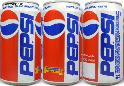 PEPSI O BOTO RECYCLE PLEASE COLLEC EDITION COLLECTOR'S NEW PEPSI DESIGN PEPSI 12/12FLOZ 354 ml PE PEPSI-COLA. PEPSI CONTAINS: CARBONATED WATER HIGH FRUCTOSE CORN SYRUP AND/OR SUGAR, CARA MIEL COLOR PHOSPHORIC ACID, CAFFEINE, CITRIC ACID AND NATURAL FLAVORINGS. PREPARED BY PEPSI COLA BOTTLING COMPANY OF MANSFIELD, MANSFIELD, OHIO 44906 UNDER THE AUTHORITY OF PEPSICO, INC., PURCHASE, N.Y. 3-74 NEW LOOK SAME GREAT TASTE ATTASTE NEW LOOK SA GAME GREAT TASTE