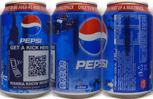 Baix go to www.pepsi.co.uk WANNA KNOW MORE? RBAK10A G standard network rates apply 330ml .uk MORE? भारत Artist: Thukrel and Tagra, India XX Each 330ml can contains 18668 of an adult's guideline daily amount MADE IN GB GYRO BAKIGA PEPSI OPEPSI-COLAⓇ 330mle Cola Flavoured Soft Drink - Best Served Chilled. Ingredients: Carbonated Water, Sugar, Colour (Caramel E150d), Phosphoric Acid, Flavourings (Including Caffeine). Distributed by Britvic Soft Drinks Ltd., Chelmsford CM1 1TU, England, Under the Authority of PepsiCo, Inc., Purchase, N.Y., USA Want to get in touch? Call our Consumer Helpline on 0800 032 1767 or visit www.pepsi.co.uk and email us. Best Before End - See End of Can. DA STEEL 50196 31773 GET A KICK HERE ERE PEPSI O Nutrition Information Typical Values Per 100ml Per 330ml Nil Energy 175kJ (42kcal) 578kJ(139kcal) Protein Carbohydrate भारत Each Day Adults of which Saturates Fibre Sodium* *Equivalent as Salt Nil Nil and Tagre. Trace Trace Nil 36.3g 36.3g NO Nil Nil Guideline Daily Amounts** Calories Fat 2000 70g Saturates Sugars Salt 20g 90g 6g Average values Individual requirements may vary Trace Trace ONLY TO BE SOLD AS PART OF AN PA MULTIPACK ONLY TO BE SIN DAS PART OF A MULTIPACK