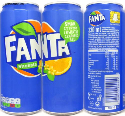 FANTA Thuszcz Kwasy nasycone Cukry Sól 8888 22 g 0,1 g 2% Shokata 120/28 kcal SMAK CYTRYNY I KWIATU CZARNEGO BZU TM FANTA fantapolska 330 ml Napój gazowany o smaku cytrynowym i kwiatu czarnego bzu. Zawiera cukier i substancje słodzące. Składniki: woda, cukier, sok cytrynowy z soku zagęszczonego (32) dwutlenek węgla, kwasy: kwas cytrynowy i kwas jabłkowy; regulator kwasowości: glukonian sodu; aromaty w tym ekstrakt z kwiatu czarnego bzu, substancja konserwująca: sorbinian potasu: stabilizatory: guma akacjowa oraz estry glicerolu i żywicy roślinnej; substancje słodzące acesulfam Ki sukraloza, przeciwutleniacz: kwas askorbinowy. Zawartość soku może powodować powstawanie naturalnego osadu. Najlepiej spożyć przed: patrz na spodzie puszki. Przechowywać w chłodnym i suchym miejscu. Chronić przed działaniem promieni słonecznych. WARTOŚĆ ODŻYWCZA Energia Thiszcz w tym kwasy nasycone Węglowodany w tym cukry Bialko Sól J-ul Żwirki i Wigury 16 02-092 Warszawa 801 110 110 fanta.pl 19-PL-401363730 TH (alu 2019 The Coca-Cola Company 100 ml 120 kJ/ 28 kcal Og Og 6,8 g "Referencyjna wartość spożycia dla przeciętnej osoby dorostej (8400 kJ/2000 kcal) Coca-Cola HBC Polska Sp.z0.0. Adres-patrz kod na spodzie puszki: 1-ul Annopol 20 03-236 Warszawa 6,8 g Og 0,03 g 330 ml (2) 396 kJ/ 92 kcal (52) Og (02) Og (02) 22 g (92) 22 g (25%) Og (02) 0,1g (24) N92F14D 95005060 676772000677 vir 396 92 kca 100m-1