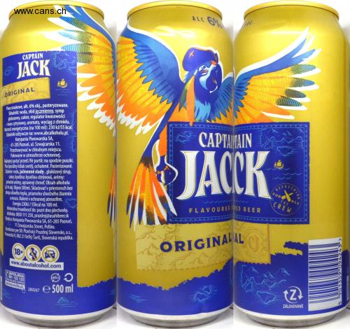 CAPTAIN JACK ORIGINAL Piwo smakowe, alk. 6% obj., pasteryzowane. Składniki: woda, słód jęczmienny, syrop glukozowy, cukier, regulator kwasowości - kwas cytrynowy, aromaty, wyciąg z chmielu. Wartość energetyczna (na 100 ml): 230 kJ/55 kcal. Składniki odżywcze na: www.abcalkoholu.pl. Kompania Piwowarska SA, 61-285 Poznań, ul. Szwajcarska 11. Przechowywać w chłodnym miejscu. Pakowane w atmosferze ochronnej. Najlepiej spożyć przed:/Nr partii: na spodzie puszki. Pivo špeciálny ležiak svetlý, ochutené. Pasterizované. Zloženie: voda, jačmenné slady, glukózový sirup, cukor, kyselina: kyselina citrónová, arómy: prírodné arómy, upravený chmel. Obsah alkoholu 6,0% obj. Objem 500ml. Skladovať v priestoroch bez zdroja sálavého tepla, priameho slnečného žiarenia a mrazu. Balené v ochrannej atmosfére. Energia 230kJ/55kcal na 100 ml. Minimálna trvanlivost' do: pozri dno plechovky. Infolinka: 0850 111 258, prazdroj@asahibeer.sk Výrobca: Kompania Piwowarska SA, 61-285 Poznań, 11 Szwajcarska Street, Poľsko. Distributor pre SR: Plzeňský Prazdroj Slovensko, a.s., Pivovarská 9, 082 21 Veľký Šariš, Slovenská republika. 18+ www.aboutalcohol.com INFOLINIA 801 133 133 Oplata wg taryfy lokalne (alu) O 289267 e 500 ml Captainjack@kp.pl 289267 ZARIN THIA ALC YOL. " CAPTAMAIN JACCK FLAVOURED RED BEER ORIGINAL AL O REFRESH FOR HING THE CREW ALL (2) ZÁLOHOVANÉ S