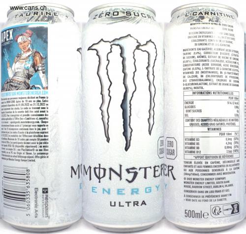 PEX -LEGENDS TAURINE M AUS D'INFOS SUR MONSTERENERGY.COM servée aux personnes majeures résidant en France (y is les DROM-COM) âgées de 18 ans ou plus. Codes motionnels disponibles du 01.09.2022 au 31.12.2022 ou épuisement des stocks. Le code se trouvant sous la te d'ouverture de la canette doit être saisi avant le 303.2023. Pour s'enregistrer et prendre connaissance des ons applicables à l'Offre (les « Conditions »), consultez internet: apexlegends.monsterenergy.com. Chaque e promotionnel donne accès à 1 jeton qui vous rapporte au 1 des 16 récompenses contenues dans le jeu, pour 1 terme de jeu. Les codes d'accès à la plateforme expirent 31.03.2023. Les modalités de l'Offre sont détaillées dans Conditions. Maximum de 10 codes par compte EA pendant dure de l'Offre. Les participants doivent avoir le jeu vidéo Legends (PEGI 16) (disponible séparément); un accès tenet; un compte EA; une PlayStation® ou une Xbox un PC via Origin et Steam. Le personnage e nécessite un achat/deblocage séparé. Offre gérée et e par Monster Energy Europe Limited. zzoo GPZEZE 5 060335 635808 Electronic Arts ENTERTAINMENT Respawn™ ZERO SUCRE ZEN ZERO SUGA SUGAR MMONSTERR ENERGY ULTRA ROXA L-CARNITINE MONSTER ENERGY ULTRA ZERO SUGAR MONSTER ENERGY ULI ZERO SUCRE BOISSON ÉNERGISANTE CAUSE SANS SUCRE, ENRICHIE EN VITAMINES B, B5, B6 ET B12 AVEC EDULCORANTS. CONTIENT DE LA TAURINE, DU GINSENG ET DE LA L-CARNITINE. INGREDIENTS: EAU GAZEIFIÉE, ACIDIFIANT (ACIDE CITRIQUE) TAURINE (0,4%), CORRECTEUR D'ACIDITE (CITRATES DE SODIUM), AROMES, EXTRAIT DE RACINE DE GINSENG (0,08%), ÉDULCORANTS (SUCRALOSE, ACÉSULFAME K CONSERVATEURS (ACIDE SORBIQUE, ACIDE BENZOIQUE), CAFEINE (0,03%), L-TARTRATE DE L-CARNITINE (0,015%), VITAMINES [B3 (NICOTINAMIDE), B5 (D-PANTOTHÉNATE DE CALCIUM), B6 (CHLORHYDRATE DE PYRIDOXINE), B12 (CYANOCOBALAMINE)], CHLORURE DE SODIUM D-GLUCURONOLACTONE, EXTRAIT DE GRAINE DE GUARANA (0,002%), INOSITOL. INFORMATIONS NUTRITIONNELLES ÉNERGIE GLUCIDES DONT SUCRES SEL CONTIENT DES QUANTITÉS NÉGLIGEABLES DE MATIÈRES GRASSES, ACIDES GRAS SATURÉS, PROTÉINES. VITAMINES VITAMINE B3 VITAMINE B5 POUR 100ml 10 kJ (2 kcal) 0,90g Og 0,20g VITAMINE B6 VITAMINE B12 POUR 100ml (%*) 8,5mg (53%) 4,2mg (70%) 0,80mg (57%) 2,5µg (100%) *APPORT QUOTIDIEN DE RÉFÉRENCE TENEUR ÉLEVÉE EN CAFÉINE, DÉCONSEILLÉ AUX ENFANTS ET AUX FEMMES ENCEINTES OU ALLAITANTES OU AUX PERSONNES SENSIBLES À LA CAFEINE (30mg/100ml). CONSOMMER AVEC MODÉRATION. Ⓒ2022 MONSTER ENERGY COMPANY. MONSTER ENERGY LIMITED, SOUTH BANK HOUSE, BARROW STREET, DUBLIN 4, IRLANDE. CONSERVER DANS UN LIEU FRAIS ET SEC. À CONSOMMER DE PRÉFÉRENCE AVANT FIN -VOIR DATE AU FOND DE LA CANETTE. 500mle R CANETTE
