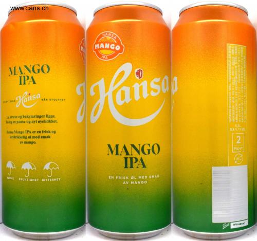 Ball 9F11AM19C AV MANGO SØDME FRUKTIGHET BITTERHET EN FRISK ØL MED SMAK av mango. IPA MANGO alu lettdrikkelig øl med smak PANT 2 Hansa Mango IPA er en frisk og Ta deg en pause og nyt øyeblikket. La stress og bekymringer ligge. ALK.4.7% VOL 0.5 L. DIN NYTELSE Hansa VAR STOLTHET IPA MANGO Hansen IPA MANGO HANSA HANSA BORG BRYGGERIER AS, NORGE. FORBRUKERKONTAKT: 800 30 565 INGREDIENSER: VANN, MALTET BYGG, MALTET HVETE, HUMLE, NATURLIG AROMA OG GJÆR. NÆRINGSINNHOLD PR. 100 ML: ENERGI 186 KJ/44 KCAL, FETT 0,2 G - HVORAV METTET FETT <0.1 G, KARBOHYDRATER 2,5 G-HVORAV SUKKERARTER <0,1 G, PROTEIN 0,4 G, SALT <0,01 G. BEST FØR SE BUNNEN. HANSA.NO