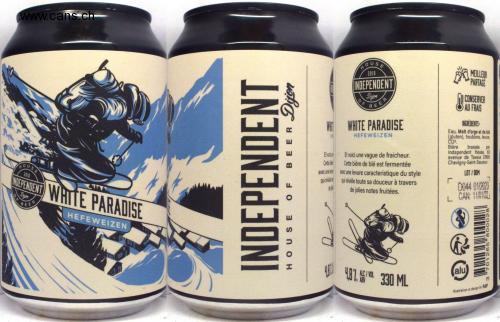 2 HOUSE 2018 PENDENT WHITE PARADISE Dijon BEER HEFEWEIZEN INDEPENDENT Dijon HOUSE OF BEER Et voi Cette be WAT WHITE PARADISE avec une le qui révèle HOUSE 2018 INDEPENDENT Dijon BEER 4.871 OF HEFEWEIZEN Et voici une vague de fraicheur. Cette bière de blé est fermentée avec une levure caracteristique du style qui révèle toute sa douceur à travers de jolies notes fruitées. 4.87.330 ML VOL ↓ CONSERVER AU FRAIS MEILLEUR PARTAGE INGREDIENTS: Eau, Malt d'orge et de blé (gluten), houblons, levure, CO². Bière brassée par Independent House, 63 avenue de Tavaux 21800 Chevigny-Saint-Sauveur. LOT/DOM 7 r D044 01/2023 L CAN: 110120 H alu Illustration et design by 3 701265 800028