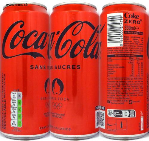 Coca-Cola EMBALLAGE ENTIÈREMENT RECYCLABLE RECYCLEZ-MOI 330ml Energie 4kJ 1kcal Matières 0% 90 grasses 0% Og Acides gras satures 0% SANS SS SUCRES 10 PARIS PARIS 2024 8880 PARTENAIRE MONDIAL Og Sucres Og 0% PARTE MOND Sel 0.03g 1% 100ml: 1.3kJ/0.3kcal SANS CNS CALORIES SCANEREZ-MOI FET 5 449000 214799 Coke ZERO 330mle se boit très frais Boisson rafraichissante aux extraits végétaux, avec édulcorants. Ingredients gazeifiée: colorant: E1506; acidifiant Sacide phosphorique: edulcorants aspartame, acesulfame-K, glycosides de steviol produits par voie enzymatique: arômes naturels arôme caféine; correcteur d'acidité citrates de sodium. Contient une source de phenylalanine. DECLARATION NUTRITIONNELLE 100ml 330ml C POUR Energie: 1.3kJ/ 4kJ 0.3kcal 1kcal (0%) Matières grasses: Og Og dont acides gras saturés: Glucides: dont sucres: Proteines: Oq Og Sel 0.01 0.03 (12) 1 "Apports de référence pour un adulte-type (8400 kJ/2000kcal. À consommer de préférence avant le voir fond boite. Conserver à l'abri du soleil, dans un endroit frais et sec. Ne pas agiter, EMB Coca-Cola Europacific Partners France, 9 chemin de Bretagne, CS 80050, 92784 Issy-les-Moulineaux. Cedex 9. Conditionné avec [autorisation de The Coca-Cola Company, Coca-Cola est une marque déposée de The Coca-Cola Company. 2023 The Coca-Cola Company. N° Cristal 09 69 39 29 00 (Appel non surtaxé) R LETRI coke.com FACILE BAC DE TRI coca-cola.fr NT 23-2190-FR 6B42A28A N Ball EMBALLAGE ENT