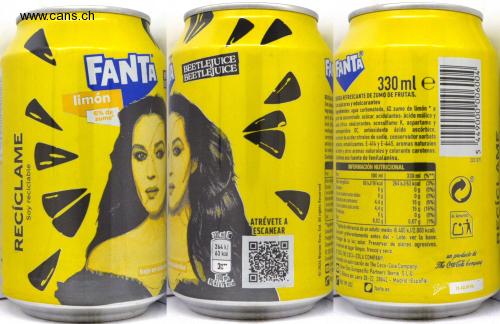 RECÍCLAME Soy reciclable FANTA limón 6% de zumo BEETLEJUICE BEETLEJUICE en calorias 330 m 264 kJ 63 kcal 3%** 100 m 80 kJ 19 kcal ATRÉVETE A ESCANEAR bajo en calorie ©2024 Warner Bros. Ent. All rights Reserved EFANTA 330 ml e BEBIDA EBIDA REFRESCANTE DE ZUMO DE FRUTAS. Conan azúcares y edulcorantes Ingrede gredientes: agua carbonatada, 6% zumo de limón * a partir de concentrado, azúcar, acidulantes: ácido málico y ácido che de citrico, edulcorantes: acesulfamo K, aspartamo y nechesperidina DC, antioxidante ácido ascórbico. correct rector de acidez citratos de sodio, conservador sorbato potássico, estabilizantes: E-414 y E-445, aromas naturales món y otros aromas naturales y colorante carotenos. Contiene Contiene una fuente de fenilalanina. INFORMACIÓN NUTRICIONAL 330 ml (%**) 264 kJ/63 kcal (3%) 700900000677 S 2021871 Por 100 ml Var energético 80 kJ/19 kcal Og las cuales saturadas: Og 4,4 g 4,4 g Og 55555 Og (0%) 0g (0%) 15 g (6%) 15 g (16%) 0,02 g 0g (0%) 0,07 g (1%) Al Amarillo Hidradratos de carbono: los cuales azúcares: Conserva C20 Envasati teinas esta de referencia de un adulto medio (8.400 kJ/2.000 kcal). Consumir preferentemente antes del - Lote: ver la base. Proteger de la luz solar. Preservar de olores agresivos. servar en lugar limpio, fresco y seco. 2024 THE COCA-COLA COMPANY. vasado con autorización de The Coca-Cola Company. Coca-Cola Europacific Partners Iberia, S.L.U. Ribera del Loira 20-22, 28042 - Madrid (España). 900 199 202 fanta.es un producte de The Coca-Cola Company Ball 7L42J01B