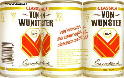 CLASSICA SSICA CLASSICA Cont. 116 FL OZ. Cont. 33 cl. VON-IN- WUNSTEISTER Cont. VON N 11,6 FL. OZ. C Cont. 33 d. N- WUNSTER sei come voglbi, no. Briol 1879 Von Wunster. 1879 classica con Bl Contenente antiossidante acido l ascolascorbico, Ingredienti: acqua, malto d'orzo,cerea cersali non maltati, luppolo, lievito. Ingredients: water, barley malt, unna onmalted cereals, hop, yeast. Wunster S.p.A. Comun Nuovo (BG) B0) taly Best before end (see bottom). Da consumarsi preferibilmente ent (vedi sotto). Enie Esie 1-BRRA BEER BIRRA BEER BIRRA 8 "008810 001905 ০