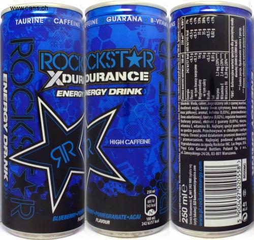 FFEINE GUARANA B-VITAM ERRY POMEGRANATE ACAI TAURINE CAFFEINE INS SR ROC CKSTAR Y DURDURANCE ENERGYNERGY DRINK Ingredients: Water, sugar, concentrated black carrot juice, carbon dioxide, acids (citric acid, lactic acid, jabic acid), aroma, caffeine (0.03%), antioxidant (ascorbic acid), taurine (0.02%), acidity regulator potassium phosphates), guarana extract (0.01%), niacin, vitamin E, vitamin B6. Best before: on the bottom of the can. Store in a cool and dry place place. Protect against sunlight E freezing. Best served chilled. Manufactured with the permission of Rockstar INC. Las Vegas, USA. Pepsi Cola General Bottlers Poland Sp. with 0.0 u. Zamoyskiego 24/26, 03-801 Warsaw. SRT HIGH CAFFEINE SR 250 ml 605 kJ 143 kcal BLUEBERRY-PO FLAWO 41 7% FLAVOR 100 ml: 242 kJ / 57 kcal ALU KEN ERGY DR K ROCKS Carbonated energy drink. High caffeine content, not recommended for children, pregnant and breastfeeding women (32 mg / 100 ml). Consume in moderation. 250 ml **% RWS * AVERAGE NUTRITION 100 ml 250 ml 242 kJ / 57 kcal 605 kJ / 143 kcal <0.5 g Energy Consumer Service: 801 392 900 (fee acc. To local tariff). consumer@pepsico.com www.pl.rockstarenergy.com <0.5 g <0.1 g 35 g 35 g 38% <0.5 g 0.02 g <1% <1% <1% 13% - including saturated acids <0.1 g Carbohydrates -including sugars Protein 2Dzsn 14 g <0.5 g 0.01 g 3.2 mg (20% ***) <1% 195 Niacin Vitamin E Vitamin B6 0.28 mg (20% ***) * NRV - Reference intake value for an average person (**% 0Z) bu ャ 'Z adult (8400 kJ / 2000 kcal). ** Average portion. The package contains 1 serving. *** Daily nutrient reference values for vitamins. DR AT