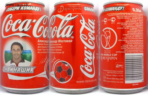 GOG EPH KOMAHA 13TOTOBAEHOCPA3PELWEHAS THE COCA-COLA COMPANY MANUFACTURER CODE SEE IN THE SHELF LINE: (mo) 000 COCA-COLA HYCHBISHI EURASIA RUSSIA, 603032, NIZHNY NOVGOROD COBEN 2002 FIFA WORLD CUP O KOREAJAPAN KOMAHAY! 0.33h 1999 Coca-Cola (MO) 000 COCA-COLA EICHBISHI EURASIA st. BAUMAN, 66. BRANCH MANUFACTURER вг. MOSCOW (BUT) 00O COCA-COLA BOTTLERS SIBERIA RUSSIA, 630057, NOVOSIBIRSK st. TAVRICHESKAYA, AUTOBAZ N2 42 Kcal / 100 ml, Carbohydrates 11g / 100 ml DRINK COOL USE BEFORE DATE, INDICATED AT THE BOTTOM OF THE BANK STORE IN A COOL AREA TU 9185-437-00008064-2000 about 2002 THE COSA-COLA COMPANY "COCA-COLA" SOFT DRINK ON VEGETABLE RAW MATERIALS COMPOSITION: WATER, SUGAR, DIOXIDE CARBON, DYE (SUGAR KOHLER), ACID REGULATOR (ORTHOPHOSPHORIC ACID), NATURAL FLAVORS, CAFFEINE MO P (HO) PO (MO) АЯ 16 АЯ85 Alexandi iksandr Mostovoy Role: Semiatse Midfielder Date of birth & birth: 08.22.68 Club: "Celte Kfleit" Spain Games for the national team of Ra to abort Russia: 55 2002 FIR FIFA WORLD CUP KOREAJAPAN Coke ENAINASHIKH SHAM HAWHX With questions and wishes please contact: Moscow 119633a / I 116 6 Moscow (095) 956 5522 RU E-Mail: cocacola@eur.ko.com www.COCACOLA.RU REXAM 966000 000677I
